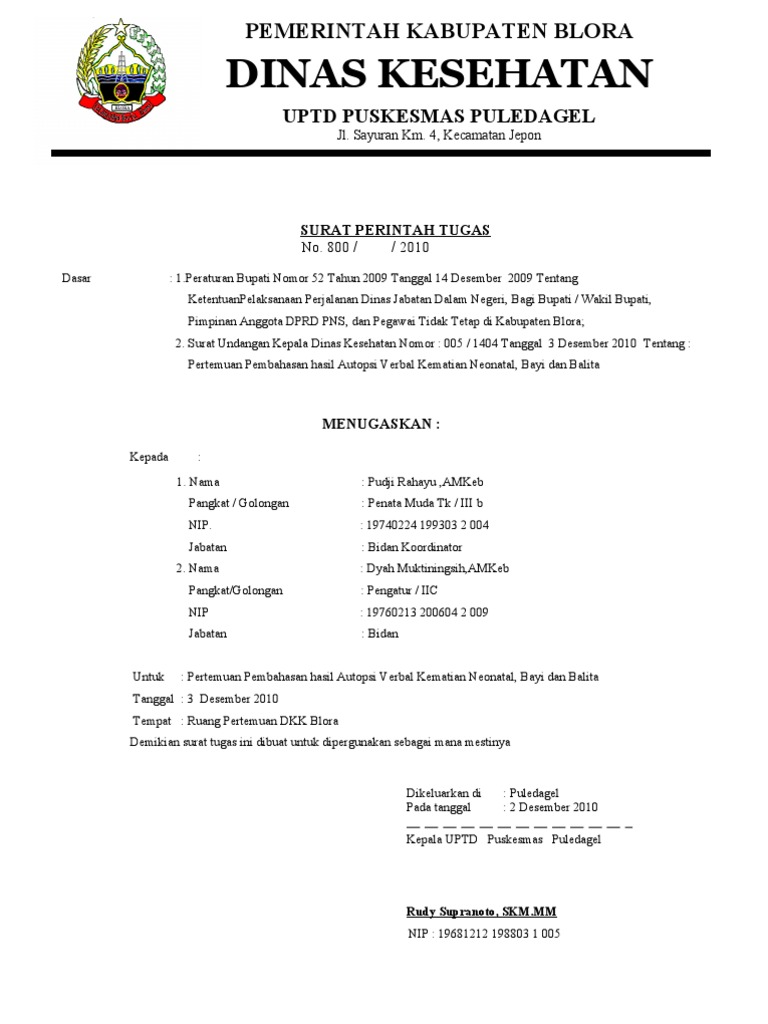 CONTOH SURAT TUGAS.doc from imgv2-2-f.scribdassets.com Umumnya surat tugas atau yang biasa disebut sebagai surat jalan adalah surat yang isinya berupa penugasan dari atasan kepada bawahan atau dari pejabat yang berwenang kepada pejabat. 4 fungsi dan ketentuan surat tugas. Surat masih dianggap media paling efektif sekaligus resmi yang masih banyak digunakan. Selamat sore rekan dan rekanita, bagaimana kabarnya hari ini? 20 contoh surat tugas lengkap terbaru surat upacara pagi pendidikan. Surat tugas di buat dan di tanda tangani oleh atasan atau pejabat yang. Contoh surat tugas untuk kerja dinas baik intansi pemerintahan surat tugas perjalanan dinas organisasi intansi pelatihan guru dan perusahaan pada dasarnya hampir sama dalam hal format penulisan dan hanya saja pada bagian isinya yang berbeda sedikit. Anda bisa meniru beberapa format yang telah tersedia secara bebas.